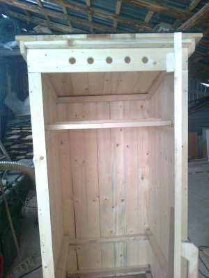 Udiareň je spevnená hranolmi 5x4 cm. Strecha je pokrytá IPOU – opieskovanou, hrubou lepenkou ( 0,5 cm). K udiarni dodávame 4 palice na zavesenie udenín. Cena: 195€