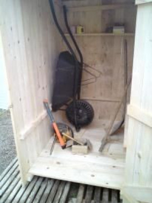 Ďalším z našich výrobkov je domček na náradie, ktorý ma veľmi dobre využitie na záhradkách. Cena domčeka na náradie je 195€.